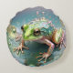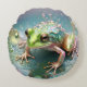 "Emerald Essence: Green Frog in Fractal Art" Round Cushion