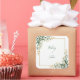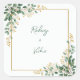 Bring a breath of fresh, organic elegance to your stationery with this vibrant watercolor botanical arrangement. The design features lush clusters of emerald eucalyptus leaf paired with delicate, sun-kissed yellow mimosa berry accents that gracefully adorn the corners. A clean, shimmering gold square frame ties the arrangement together against a crisp white backdrop, creating a sophisticated and airy aesthetic. Perfectly envisioned for a modern garden wedding or a chic spring celebration, these finishing touches turn your outgoing envelopes into a curated experience. Whether you are sealing an elegant invitation suite or decorating a bespoke favor box, this botanical flourish acts as a hallmark of organic grace and timeless natural beauty.