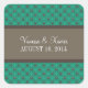 Trendy and chic Fancy Lattice Wedding Stickers featuring a stylish circle and diamond studded pattern over a vibrant emerald green background with a broad two-toned brown border. These elegant wedding stickers are perfect for a modern wedding. Easy to customise, simply add your wedding details in the text fields provided. Click "Customise It" to find more personalisation options.