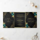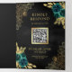 Emerald Floral Gold Lace QR Code Black Wedding Tri-Fold Invitation