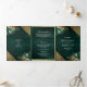 Emerald Floral Gold Lace QR code Cream Wedding Tri-Fold Invitation