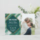 Modern, artsy, and chic faux printed gold, emerald green, and white abstract agate marble patterned Save-the-Date wedding card. This classic and sophisticated design is perfect for the trendy and stylish marrying couple. Personalise with your own message on the front as well as a customised monogram initial on the back. All photo print design.