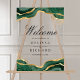 Emerald Gold Abstract Ink Wedding Welcome Acrylic Sign