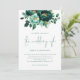Emerald Gold Flowers Photo QR Code Wedding Invitation