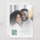 Emerald and Gold Flowers Photo Overlay QR Code Wedding. Elegant florals flow down from the top. The Wedding Of is in a set handwriting style script. Easily personalise the rest of the text to your own details. Replace the sample image on the back with your own. Add your QR code to your wedding website on the back makes this a convenient option for your guests to RSVP and see all the details without the need for separate RSVP and details cards. Your QR code will be automatically generated to update the sample code in the design, when you simply change the sample URL in the template with your own wedding website URL.