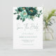 Emerald and Gold Flowers QR Code Wedding. Gorgeous green florals and foliage and an elegant set script for Save The Date. The rest of the text you can easily personalise with your details. Add your QR code to your wedding website on the back or delete this and the text on the back if not required. Available digitally or printed.