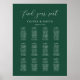 Classic Calligraphy Script Wedding Seating Plan Find Your Seat. Personalised Dark Emerald Green Seating Chart for 120 guests (12 tables). Just click the customise further link, shown under the text personalisation area on the right, and choose your custom colour background. This sign poster template makes it fast and easy to create stunning additions to your wedding decor. Signs can be enlarged, there are many sizes to choose from, as well as options for custom framing and matting.