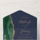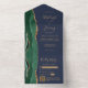 Emerald Green Agate Gold Navy Blue QR Code Wedding All In One Invitation