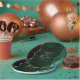 These elegant modern wedding paper plates feature an emerald green watercolor agate geode background trimmed with faux gold glitter. Personalise them with the names of the couple in gold-coloured handwriting calligraphy over a large green ampersand, and the wedding date in copperplate font.