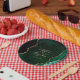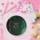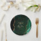 Emerald Green Agate Gold Script Wedding Paper Plate