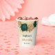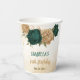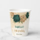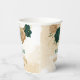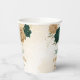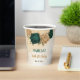 Beautiful fall paper cup featuring emerald green and beige gold flowers with green leaves .