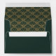 Emerald green and gold art deco fan flower motif envelope. The design features a repeating emerald green and gold fan flower pattern. 1920s Gatsby style motif.