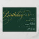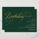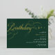 Elegant birthday party invitations with gold foil accents on a dark green background. "Birthday party" and name text will be featured in real metallic foil, while event details text will be printed in matte white, for easy readability.