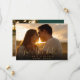 This elegant gold heart script photo save the date card features your photo and a script save the date above your names, date and venue. The reverse features an additional photo and message on an emerald green background. Designed by Thisisnotme©
