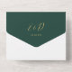 All in one emerald green and gold wedding invitation featuring elegant hearts script typography and monogram initials. The invitation includes a perforated RSVP card with your wedding website QR code and details. Designed by Thisisnotme©