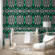 Emerald Green and Silver Pattern Peel and Stick Wallpaper