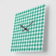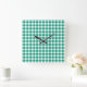 Emerald Green And White Checks Gingham Square Wall Clock
