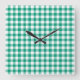 A stylish wall clock with a classic emerald green and white checks gingham pattern design. Available in square and round shape.