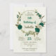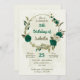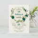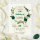 Beautiful romantic birthday party invitations featuring emerald green and beige flowers and some leaves .