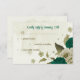 Beautiful romantic wedding response card featuring emerald green and beige flowers and some leaves .