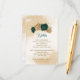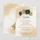 Beautiful wedding details enclosure card featuring emerald green and beige gold flowers with green leaves .