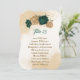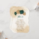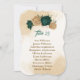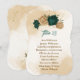 Beautiful fall wedding seating chart card featuring emerald green and beige gold flowers with green leaves .