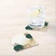 Beautiful fall wedding paper coaster featuring emerald green and beige gold flowers with green leaves .