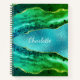 Emerald green and blue agate, marble stone print as background Personalise and add your name. The name is written with a modern hand lettered style script.