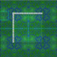 Seamless decorative pattern featuring blue geometric shapes in damask style on a emerald green gradient background.