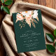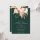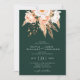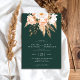 Emerald green and floral theme wedding invitation featuring boho chic watercolor flower accents of peony roses and pampas grass. Simple to personalise with the details of your wedding for your guests in elegant minimalist typography.