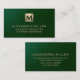 Make a bold statement with these luxurious emerald green textured business cards featuring a brushed metallic gold monogram. These cards are perfect for professionals who want to stand out with a unique and elegant design.