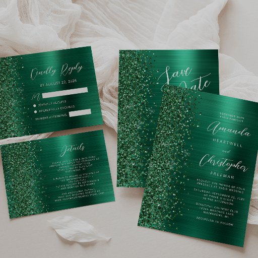 Glam Brushed Metal Glitter Emerald Green WeddingDesigned by Akhates Designs