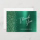 Emerald Green Brushed Metal Wedding Flat Thank You Card