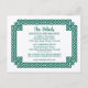 Emerald green celtic knot frame and claddagh wedding details enclosure card. This enclosure card features a celtic knot border in emerald green. The background is white on the front and emerald green on the back. All the wording can be personalised however you want.