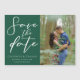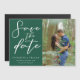 This solid emerald green wedding save the date magnet card features classic white script for a couple getting married in a forest or other nature venue. Personalise with your favourite couple engagement photo. Celebrate your love with this tranquil colour and coordinate with our minimalist typography magnetic invite.
