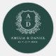 Emerald Green Crest Modern Monogram Wedding Classic Round Sticker