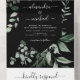 Emerald Green and Black Eucalyptus Greenery Botanical Watercolor Spring Wedding RSVP Invitations on White background - includes beautiful and elegant script typography with modern botanical leaves and greenery for the special Wedding day celebration.