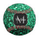 Personalise faux sparkly trendy girly sport equipment baseball ball with your initial and name. Beautiful girly glamourous dark emerald green shiny glitters sparkles design. We use photo of green sparkles, not actual glitter! Faux sparkles!