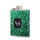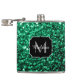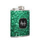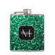 Emerald Green faux glitter sparkles Monogram Hip Flask