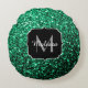 Emerald Green faux glitter sparkles Monogram Round Cushion