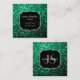 Emerald Green faux glitter sparkles Monogram Square Business Card