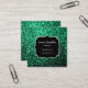 Personalise and customise elegant faux sparkly square business card with your initial and name. Beautiful girly glamourous Smaragd green shiny glitter sparkles. Photo of Green sparkles not actual glitters!