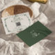 A classy and elegant calligraphy emerald green and white retro old money wedding QR code rsvp card. That has a vintage and modern white background with green script and hand written whimsical stylish wording and hand drawn floral botanical frame. With customizable scannable QR code in the center. Luxurious and chic with classic handwritten lettering. It is all editable by clicking on the personalize button.