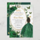 Emerald Green Floral Brown Princess Quinceañera Invitation