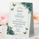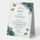 Budget friendly double-sided menu sign, featuring chic emerald green floral, charming butterflies and elegant gold accents. Personalise the front side with your lunch/ dinner menu and the back with your drinks / bar / signature cocktails menu. It is easy to personalised, simply press the Edit Using Design Tool button to further re-arrange and format the style and placement of the text. Also great for Sweet 16, Bat Mitzvah, 18th birthday and more occasions! Explore coordinating items available in-store to create a stylish and cohesive celebration! (c) The Happy Cat Studio