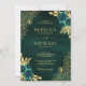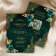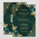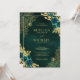 Emerald Green Floral Gold Lace QR Code Wedding Invitation