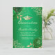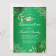 Elegant floral and crown themed Quinceanera invitation in emerald green. Please note, gold foil design is simulated.