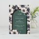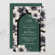 This modern wedding invitation design features a burgundy background on both the front and back, adorned with an elegant anemone flower pattern. The black, grey, and cream-coloured watercolor flowers lend a classic yet whimsical touch. Enhanced by off-white fonts blending elegant script and classic serif, the design exudes a unique blend of dark, gothic vibes with a modern boho chic feel. Ideal for both contemporary city weddings and elegant rustic affairs, this invitation is fully customisable. You can personalise all text, adjust background colours, and the emerald green arch matches the back side for a cohesive look. A simple initial monogram on the front and back adds a personalised touch. Perfect for autumn, fall, winter weddings, and any event where a rich, deep emerald green adds a touch of sophistication. Available as a printed invitation, or as a downloadable digital invite that you can send in e-mail or have printed locally!