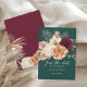 Announce your special day with this boho rustic save the date card featuring elegant watercolor florals in burgundy, ivory, and peach on deep emerald green. Perfect for fall weddings and floral themes. Customise with your names and date. Need help? Contact me: bpkolman@gmail.com
