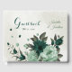 Unique wedding guest book featuring romantic emerald green and soft green flowers and green leaves